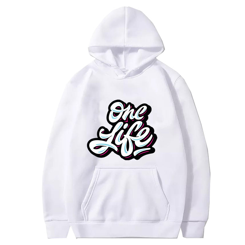 Home Shop Printed HOODIE For Men White (ONE LIFE)