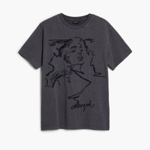 Womens Premium Cotton Printed T-Shirt – APRIN188 – Black
